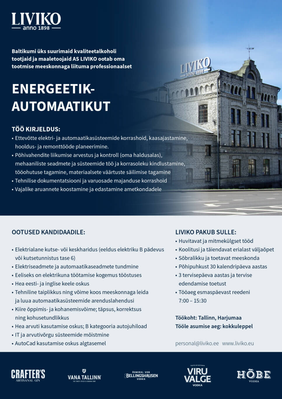 Baltikumi üks suurimaid kvaliteetalkoholi tootjaid ja maaletoojaid AS LIVIKO ootab oma meeskonnaga liituma