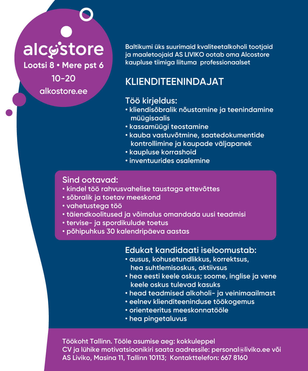 ja maaletoojaid AS LIVIKO ootab oma Alcostore